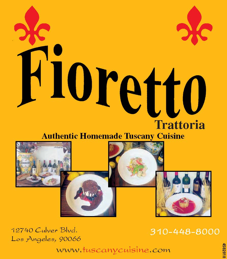 Welcome to Fioretto Trattoria. We hope you enjoy your meal in our casual, family Tuscan atmosphere.
